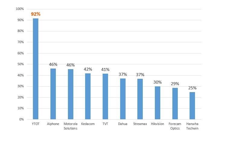 除了摩托羅拉外,榜單新面孔還包括思特威、Intelbras、Gallagher、福特科光電、藍色星際。除了Intelbras(巴西)與Gallagher(新西蘭)外,其余企業均來自中國。